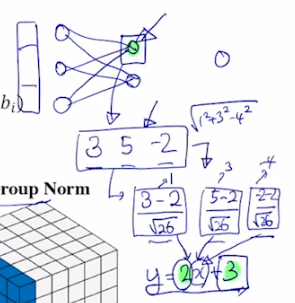 그냥 neural network의 경우(linear regression 같은걸 말하는 듯) hidden 결과가 나왔을 때 hidden state 의 평균과 분산 정보가 어쨋든 버리고 입력값에 대해 빼주고 표준편차로 나눠 정규화 시켜줬다. 그래야 원래 식 y=2x+3 에서 분산이 4이고 평균이 3이라는 원래 식 정보를 반영하기 때문인 것 같다. 그래서 특정 노드에 발견되어야 하는 값에 가장 최적화된 평균과 분산을 원하는 만큼 가지도록 동작하게 된다. 그래서 layer norm 도 batch norm과 유사하게 첫번째 단계에서는 주어진 sample에 대한 평균 분산을 0과 1로 만들고 다음엔 우리가 원하는 평균 분산을 주입하는 두 단계로 이루어져 있다.