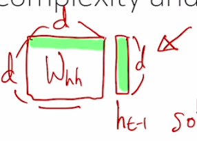 RNN의 경우 hidden state인 h의 차원이 d이고 d*d 크기의 weight와 곱셈을 하고, 이것이 입력 길이 n번만큼 수행되기 때문에 O(n*d^2). 그러나 이렇게 순차적으로 계산하는 것이기 때문에 병렬처리가 불가능해서 그냥 시간복잡도는 O(n)이 된다. 단어길이도 n번 거쳐가 도착하니까 O(n).