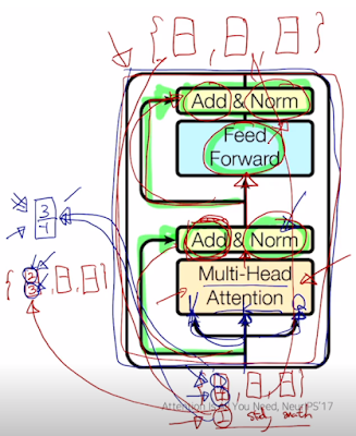 보면 thinking과 machines 단어를 넣었을 때 나온 hidden state를 정규화 해주고 내가 원하는 평균과 분산 값을 Affine transformation을 통해 주입하는 걸 볼 수 있다. 이게 layer normalization. batch normalization은 조금 다르다고 하지만 대강 비슷하다고 함.