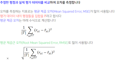 추정한 평점으로 순위를 매긴 후, 실제 평점으로 매긴 순위와의 상관 계수를 계산하기도 합니다