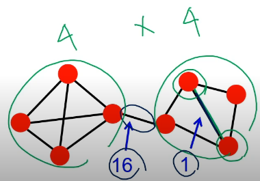 그렇게 원본 그래프에서 군집 s 내부 간선의 수에 바꾼 거를 빼서 어떻게 점수를 만들어 내는 모양이다. 이 군집성 정의 식에서 식을 통해 나온 결과가 크다는 것은 그래프에서 군집 s 내부 간선의 수가 많다는 걸 뜻하기 때문에 성공한 군집 탐색이라고 한다.