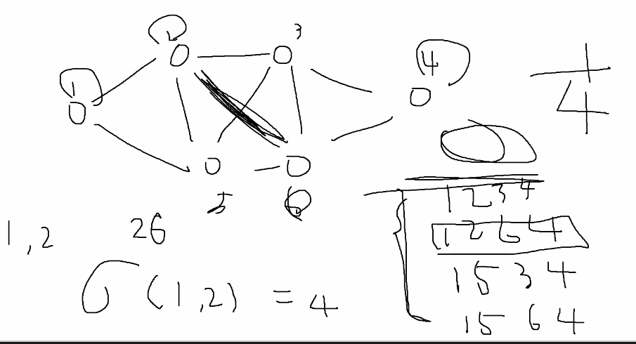 그럼 이 다리역할을 하는 간선을 어떻게 찾아내냐? 간선의 매개 중심성(Betweenness Centrality)를 사용한다. 이는 해당 간선이 정점 간의 최단 경로에 놓이는 횟수를 의미한다.