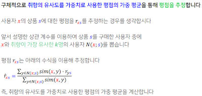 수학 수식은 저러지만 실제로는 가장 비슷한 사람 5명, 10명 뽑아서 행렬곱셉으로 한번에 sum을 계산하는 방식을 쓰는 것 같다.
