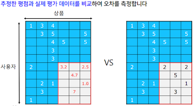 추정한 평점으로 순위를 매긴 후, 실제 평점으로 매긴 순위와의 상관 계수를 계산하기도 합니다