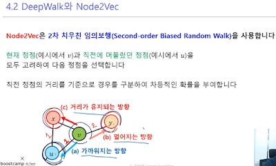 그래서 이렇게 임의 보행 방법을 사용할 수 있는데, 여기에서도 방법에 따라 DeepWalk 와 Node2Vec이 구분된다.