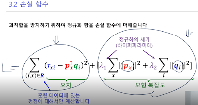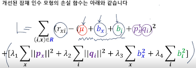 기존엔 p와 q를 통해 평점 자체를 예측하려고 했다면, 지금은 사용자 편향과 상품 편향을 제외하고 그 차이만을 pq 내적을 통해 근사하려고 하는것.