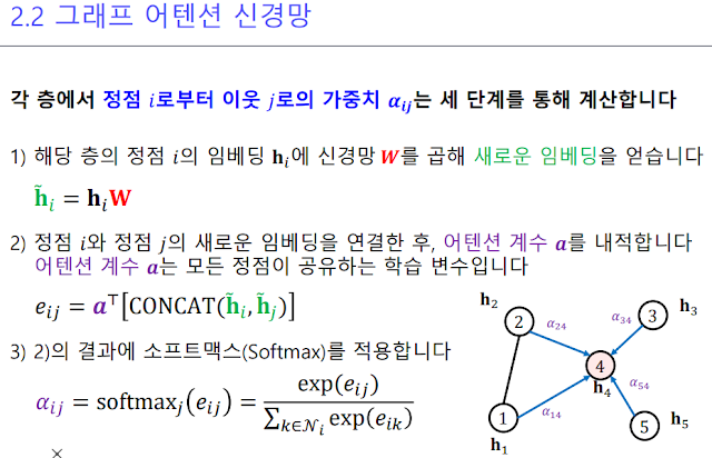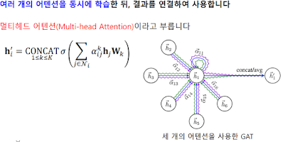 그래서 각 이웃들 마다도 가중치를 적용한다. 진짜 가중치 엄청 좋아한다. 각 이웃들마다 어디에 집중할지 다른 가중치를 부여하기 때문에 어텐션이라고 부르는 것 같다.
