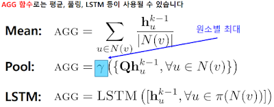 위에서 한건 그래프 신경망의 기본 형태였고, 이 신경망을 다양하게 개조해서 사용한다고 한다. 다양한 형태의 집계 함수를 사용한다고 한다.