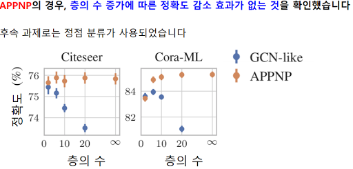그래서 APPNP의 경우 0번째 레이어를 제외하고 모든 층의 임베딩을 함께 사용한다고 한다. 단순하게 집계해서 어떻게 처리하는것 같다. 몰라 여기 이해 안가니까 나중에 찾아봐야 한다.