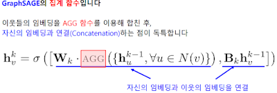 결합한다. 그래서 이름이 GraphSAGE라는 라이브러리 이름을 가지는 듯.