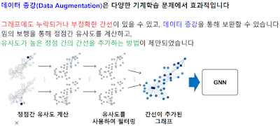임의 보행을 먼저 수행해서 유사도가 높은 정점 간에 간선을 추가해서 데이터 증강을 한다고 한다. 그러니가 원래 입력 그래프에서도 데이터가 누락되거나 부정확한 간선이 있을 수 있기 때문에 얘는 분명이 간선이 있을텐데 없다면 그걸 이어주고 학습하는 것이다. 그럼 더 정확한 학습이 된다는 생각. 실제로 개선된다고 한다.