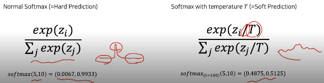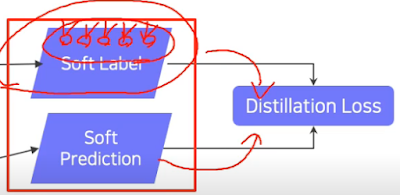 prediction의 경우 우리가 쓰던 one-hot vector말고 soft label을 쓴다고 한다. 이유는 학습목적이 단순히 구분하는 것이 아닌 teacher의 대략적인 구조를 그대로 익히는데 목적이 있기 때문이다.