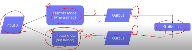 Teacher-student network structure 방식이라는 것도 있다고 한다. Teacher model은 큰 모델로, Student는 작은 모델로 하고 둘의 output이 비슷하게 나오도록 student를 훈련한다고 한다. unlabeled data에 대해서만 훈련할 수 있기 때문에 Unsupervised learning이라고 한다.