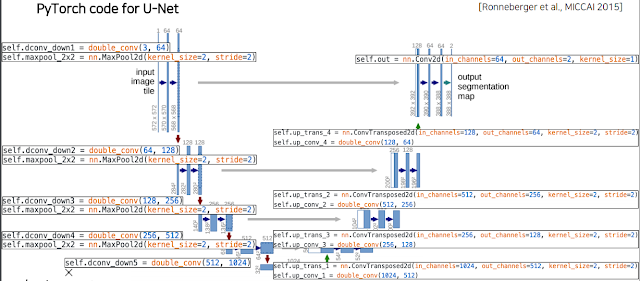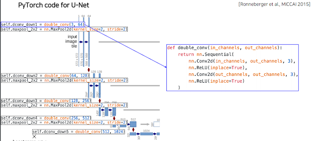 FCN의 skip connection과 유사한데, downscaling과 upscaling이 완전히 대칭되도록 만들어 Contracting path 에서의 정보가 Expanding path에 그대로 들어갈 수 있게 설계해 놓음. 그래서 정확하게 2배씩 내리고 올리고 conv도 2배씩 늘리고 줄이고 하는걸 볼 수 있다.