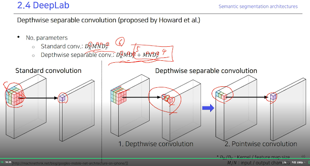입력값이 워낙 크다보니 파라미터 수를 줄이는 방법론. depthwise separable convolution은 그냥 일반적인 conv를 둘로 나눔. 실제 수치로 대강 개산해 봐도 적은 수의 파라미터가 된다.