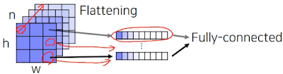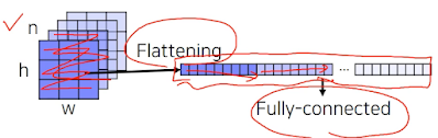 입력 이미지 크기가 항상 고정되었어야 했는데 이유는 사람이 손으로 코드를 작성할 때 이렇게 flattening 하는 과정에서 얼마로 쫙 펼쳐내야 할 지 정해야 하기 때문. 그리고 이렇게 하면 위치 정보도 잃어버리는 듯.
