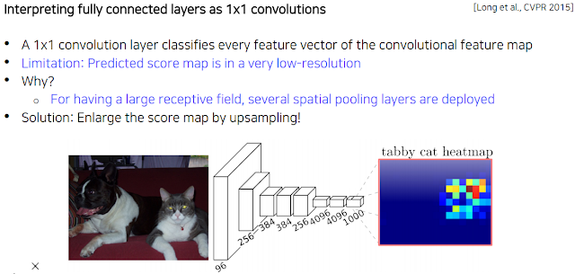 그냥 단순한 벡터정보르 출력하는 Fully connected layer와 달리 Fully convolutional layer(FCN)는 위치를 표현 가능. 일자로 쭉 펴질 않으니 가능한 듯.