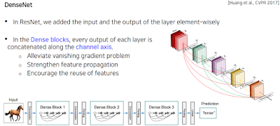 위에서 Residual block 한 것처럼 모든 블록 안에 시작 부분을 뒤에 그대로 넘겨주되, 더하지 말고 concat으로 해보자 한게 DenseNet.