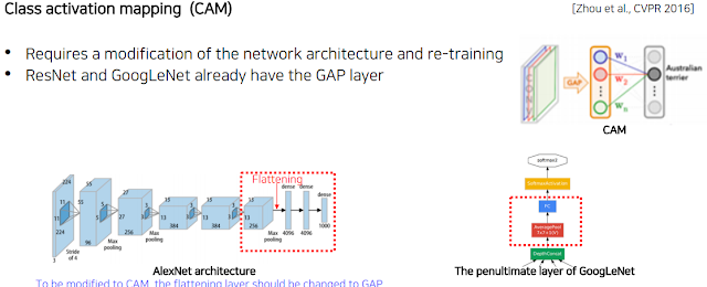 이미 만들어진 모델 끝 부분을 도려내야 한다는 것. 마지막 layer 구성이 GAP과 FC layer로 이루어져야 한다. AlexNet 같은 경우는 Flattening해서 vector로 만들기 때문에 완전히 도려내서 다시 학습해야 하고 GoogLeNet은 global average pooling 과 FC로 이루어져있어 사용할 수 있다.