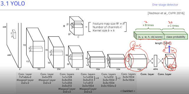 저렇게 cnn 후반부 부분에 7*7 * 1024 가 나오는데 위에선 k anchor box를 2개로 정하고 수행해서 마지막 channel이 30이 나온다.