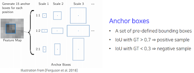 IoU는 몇가지의 박스들 후보, k개의 anchor boxes를 미리 정의해놓고, sliding window로 각각 위치마다 k개 후보 박스들을 넣어서 비교한다. 어느 점수 이상이 되는 것들만 남겨놓고 나머진 지우는 방식으로 한다.