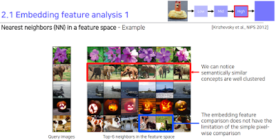 입력 이미지 주고 6개의 이웃을 관찰. 어떤것을 중심으로 비슷하다고 판정하는지, 또 개 사진을 보면 자세에 상관없이 관련짓는 모습 등을 관찰할 수 있다.