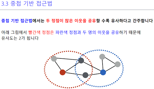 그래서 정점 유사도를 어떻게 정의할 것인지, 몇가지 접근법을 알아본다.
